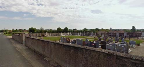 Le cimetière se trouve un peu au nord-ouest du village, sur la route allant en direction de Toussieux. Il se voit assez bien car il est sur une bute au milieu des champs.