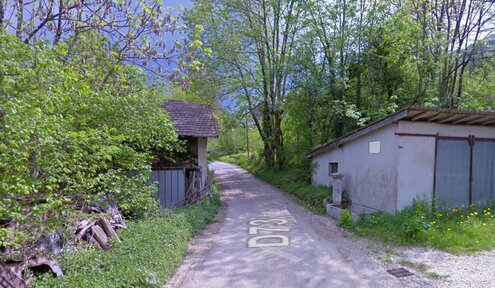 A l'entrée du village, sur la droite après le premier grand virage