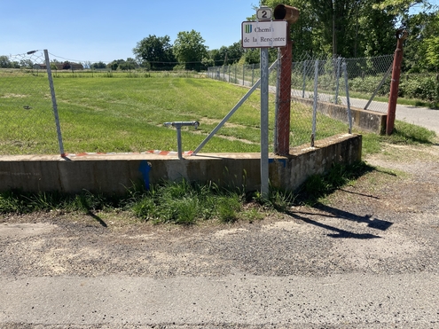 Deux robinets se trouvent à l'entrée d'un petit parc avec bancs, à côté d'un terrain de tennis, à l'angle du chemin de la rencontre et du chemin du chateau