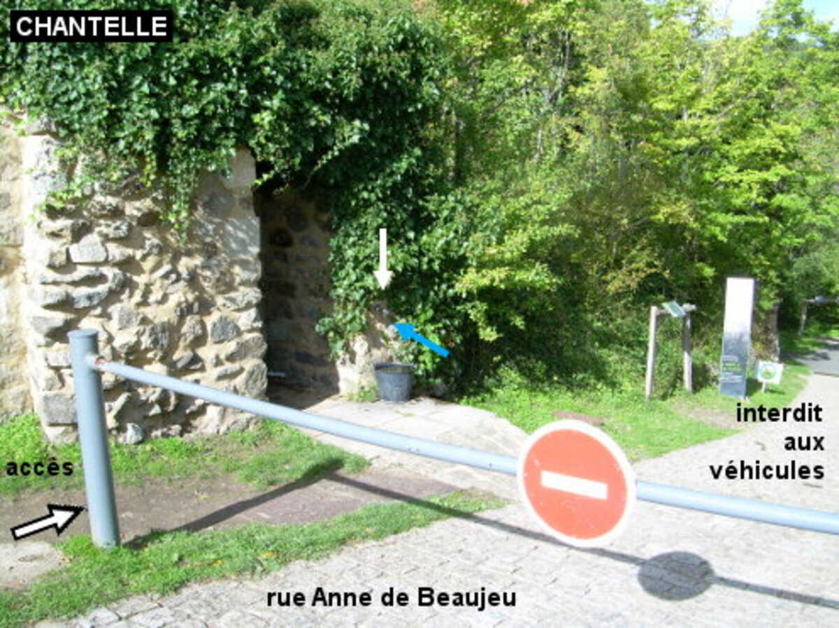 Le robinet se trouve à proximité de l'Abbaye (fléchée), à 255 mètres de la D987, et à gauche de la barrière interdisant le passage des véhicules plus loin dans la rue. 1) Sur la D987 en provenance de Bellenaves, après le stop au carrefour à droite avec la D22 (qui rejoint la D582 puis la D42 direction Jenzat) et à gauche avec la D42 (direction Monestier par la D42 puis la D22), traverser tout le centre-ville. Après la Mairie sise côté gauche, après la flèche D987 plantée à droite derrière le carrefour avec la rue menant à l'église que l'on voit, et peu après le passage piéton, tourner à gauche en suivant la flèche indiquant l'Abbaye. Rouler jusqu'au bout de cette rue (les derniers 120 mètres sont pavés) : à droite il y a l'entrée de la cour de l'Abbaye, tout droit il y a une barrière avec un sens interdit. Passer à gauche de cette barrière qui stoppe les véhicules, afin d'accéder au robinet qui est fixé sur le mur à gauche juste après. 2) Sur la D987 en provenance de Saint-Pourçain-sur-Sioule, peu après la grande fresque de la Maison du Tourisme peinte sur un mur qui nous fait face côté droit, tourner à droite en direction de l'Abbaye et idem fin du point 1.