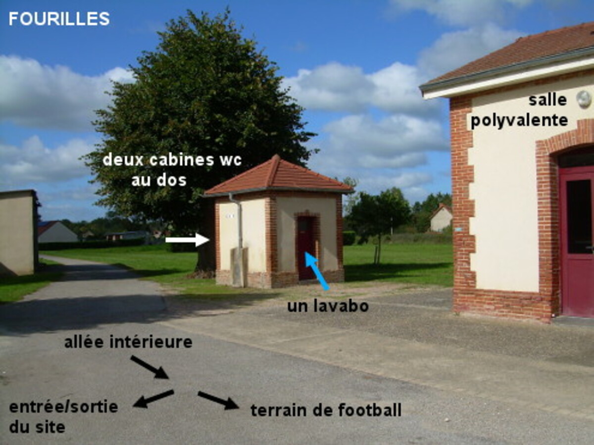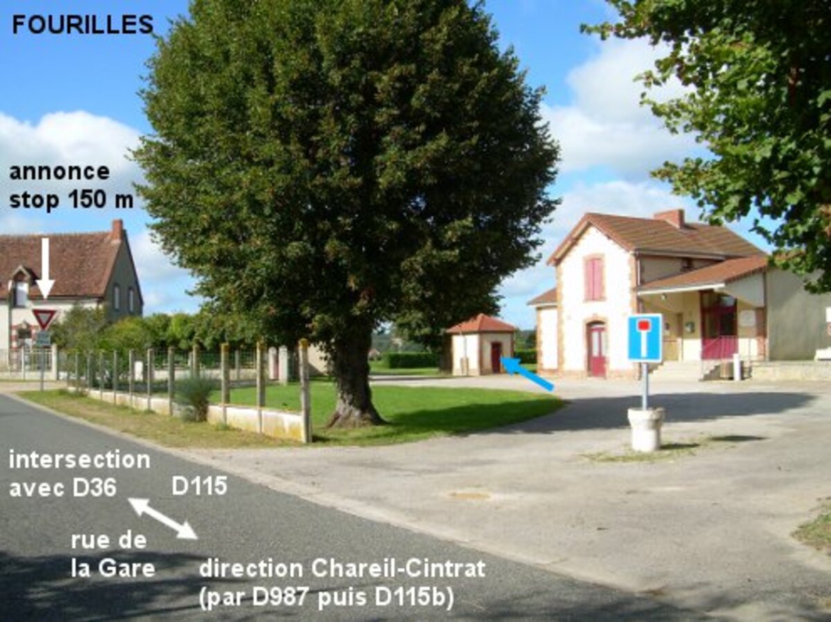 Le petit bâtiment des toilettes se trouve à gauche de la salle polyvalente (fléchée) qui est desservie par la D115 et en face du point kilométrique 11. 1) En provenance de Fleuriel sur la D36 puis un petit bout de D987 et enfin la D115, tourner dans la première à droite peu après le panneau de début de village. Juste après on verra un terrain de football côté droit, entrer ensuite à droite sur le site de la salle polyvalente (il y a un panneau ''voie sans issue'' planté au milieu de la large voie d'accès). Se diriger vers la gauche, à gauche du grand bâtiment pour accéder au tout petit bâtiment carré des toilettes (à 50 mètres de la rue par une allée asphaltée). Sur le côté droit dudit bâtiment (quand on regarde vers celui-ci perpendiculairement à l'allée) la porte surmontée d'un écriteau ''lavabos'' donne dans un local avec un lavabo. Sur le côté opposé du cabanon, il y a deux portes surmontées respectivement de deux écriteaux ''messieurs'' et ''dames'' donnant dans deux cabines WC. 2) En provenance d'Étroussat sur la D36, ignorer le carrefour à droite avec la D282 avec la flèche indiquant la direction de Chareil-Cintrat, pour tourner dans la suivante à droite, avec cette même direction mais sur la D115 et en suivant la grande flèche ''salle polyvalente''. Au sortir du virage à droite, entrer à gauche sur le site de la salle polyvalente et se diriger vers la gauche jusqu'au cabanon des toilettes juste avant le gros arbre.