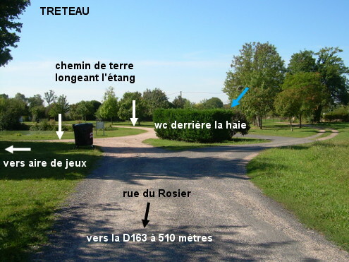 Ces toilettes se trouvent sur l'aire pour camping-car au bord de l'étang communal du Vieux Moulin, à 510 mètres de la D163. 1) En provenance de Cindré sur la D463 puis la D163, après être passé à côté de la Mairie et de l'église situées à gauche, juste après l'extrémité de l'étang à gauche de la route, tourner à gauche dans la rue du Rosier (flèche ''aire de jeux''). Continuer dans cette rue jusqu'à son extrémité (le macadam devient gravillonné sur les derniers mètres). Là (face à la deuxième extrémité de l'étang), on verra sur la droite une borne pour camping-car (service payant) et sur la gauche une haie derrière laquelle on découvrira le petit cabanon préfabriqué des toilettes (de faible hauteur sous plafond) dont l'entrée est orientée face à l'étang. N.B. : On peut remplir des très grands bidons dans le lavabo. 2) En provenance de Gouise, sur la D163, environ 530 mètres après l'intersection avec la D21 (et 150 mètres après l'école sise côté gauche), tourner à droite dans la rue du Rosier (flèche ''aire de jeux'') au bout de laquelle on trouvera les toilettes. P.S. : Sur les deux plans du site de l'étang présents sur place, figure un autre WC situé à côté de l'aire de jeux (celui-ci était toutefois indisponible). Pour accéder à cette aire de jeux, 110 mètres après le début de la rue du Rosier tourner dans le chemin de terre à gauche juste avant le terrain de basket et parcourir encore 70 mètres pour découvrir juste avant l'aire de jeux et coincé entre deux haies, le mini cabanon d'un WC (qui sera peut-être remis en service).