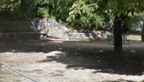 En face de l'auberge de Caussols, dans le renfoncement en pierres