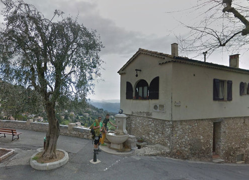La fontaine est sur la place du vieux village sur la gauche en montant. Au bout de la rue du Vallon.
