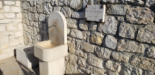 Source de Saint-Jeannet juste en face de la supérette. A noter à 10 m sur le même trottoir (cf. photo n°1) la mise à disposition d'une pompe à vélo publique. Je ne l'ai pas testée mais elle à l'air de fonctionner. Il faut tourner une manivelle.