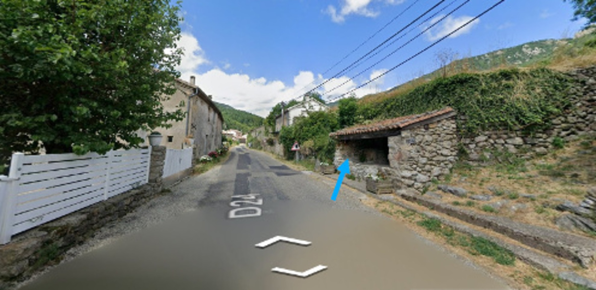Le robinet se trouve sur un ancien lavoir abrité, implanté côté droit sur la D24 dans l'ascension du col de Meyrand. 1) En provenance de Valgorge sur la D24, après l'église érigée en surplomb côté droit, après un parking implanté côté droit avec un arrêt de bus, juste après une grande bâtisse on verra côté droit le petit abri en pierre d'un lavoir juste avant le panneau annonçant un carrefour sur route prioritaire. Le robinet est fixé sur la face intérieure du mur gauche et il est accessible directement depuis la route. 2) Sur la D24 en descendant du col de Meyrand en passant par Loubaresse, après la croix avec un Christ érigée côté droit, surveiller le côté gauche de la route : après une première maison au milieu de la végétation, on trouvera entre deux grandes bâtisses l'abri en pierres du lavoir avec son robinet, au bord de la route.