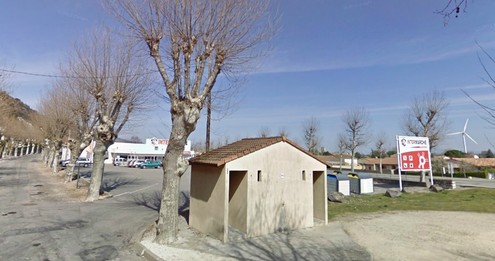 Quand on vient du sud par la D86, (de Baix), c'est juste devant le parking de l'intermarché. Il y a une maisonnette avec un robinet, et je crois aussi des WC. Très utile quand le robinet de Bzix est hors d'usage.
