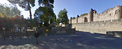 place du Prado, devant les Tours Narbonnaises (cité de Carcassonne), accolée au cimetière