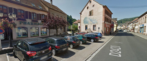 Dans la Grand Rue devant la pharmacie, sur la petite place à proximité de la caisse d'épargne.