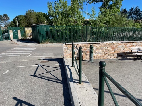 Entrer sur le parking à côté du City stade et la fontaine se trouve le long du mur à l'entrée.