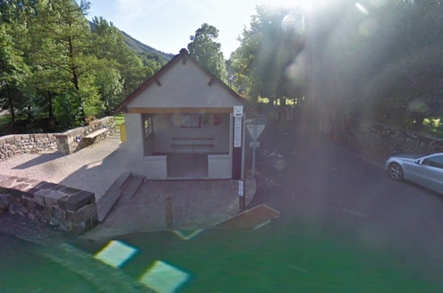 Toilettes publiques de l'autre côté du petit bâtiment qui abrite l'arrêt de bus