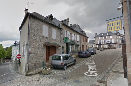 Borne au centre du village, au croisement de la rue de l'Horloge et de la grand rue, à proximité de la place et d'une grande tour sur laquelle se trouve une horloge.