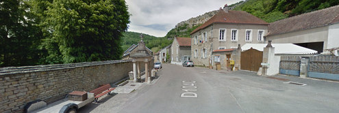Emplacement : Sur la route D104 C rue Maréchal FOCH, entre BAULME LA ROCHE & MALAIN. Remarques : Fontaine d'eau placée en partie centrale du village, face à la Mairie