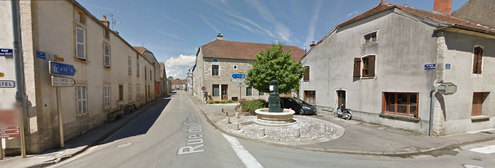 Emplacement : Sur la route principale D 959 rue VAL D'ORGNE entre LUX et TILCHATEL, proximité de la rivière LA TILLE, face à la chute d'eau, arrêt de bus Remarques : Centre du village, Fontaine d'eau robinet poussoir.