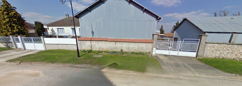 Rue principale (assez courte), devant un hangar.