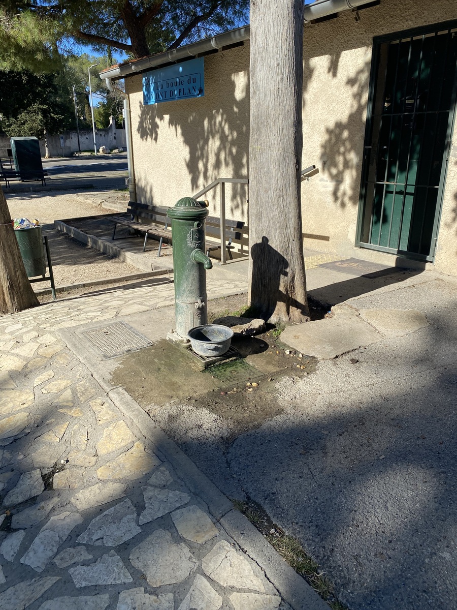 La fontaine se trouve au niveau du boulodrome