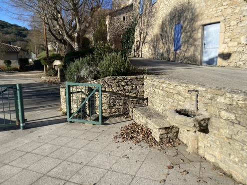 Le point d’eau se trouve sur le petit parking à l’angle de la D143 et de la rue sous les Remparts