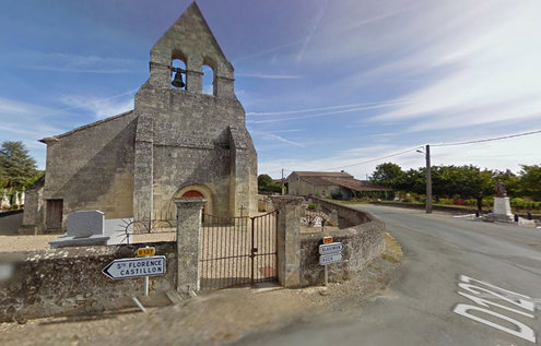 Dans le bourg de Mérignas derrière le mur d'enceinte de l'église cimetière.