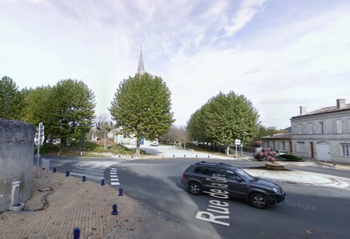 Au rond point avec la grappe de vigne face à l'église, à gauche en arrivant de la D1113.