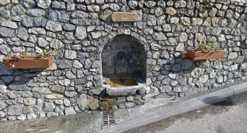 Fontaine sur la droite de la route en montant au col de Peyresourde, à l'intersection de la rue qui amène à l'église