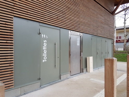 Toilettes publiques ouvertes à tous dans le nouvel Espace Sport et Nature, près de l’Office de Tourisme, côté parking