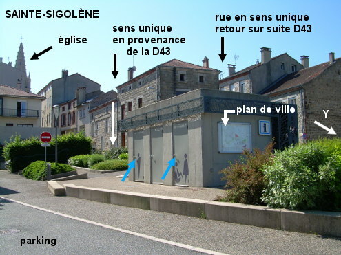 Ces toilettes se trouvent au bord d'un grand parking, non loin du cimetière. Elles sont situées côté parking, sur l'arrière d'un bâtiment qui comporte un abri avec un banc sur la face avant. 1) En provenance de La Séauve-sur-Semène sur la D500 puis la D43, suivre la direction du centre-ville. Après le deuxième rond-point toujours tout droit sur la D43, face au sens interdit (place Général Leclerc) tourner à droite (rue Charles Dupuy qui se prolonge en avenue Eugène Cornillon). On arrivera plus loin vers le parking sis côté droit (et en vue du cimetière quelques mètres après) au bord duquel il y a le bâtiment qui comporte les toilettes. S'arrêter et passer de l'autre côté dudit bâtiment pour accéder aux deux portes des toilettes (il y a un lavabo dans chacune des deux parties). P.S. : Pour retrouver la suite de la D43, on peut s'aider du plan de ville affiché sur un côté du bâtiment des toilettes. Traverser sur le passage piéton pour prendre l'autre branche en sens unique (rue du Sergent Garnier qui se prolonge en rue de la Victoire) du carrefour en Y inversé par lequel on est arrivé puis rouler tout droit jusqu'au rond-point où on aura à droite la direction Grazac sur la D43. 2) En provenance de Grazac sur la D43, après le deuxième rond-point, tourner dans la deuxième à gauche (rue Charles Dupuy) et rouler tout droit jusqu'aux toilettes côté droit.