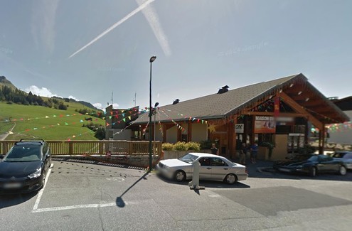 Entrée à l'extérieur par la gauche sur la passerelle en bois