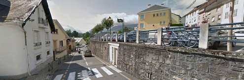 Des toilettes se trouvent sous une place servant de parking, à proximité de l'école.