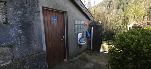 Après avoir passé le portail, il faut passer sous le clocher en longeant le mur, les WC public avec robinet se trouvent sur la gauche.