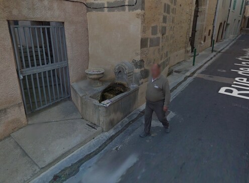 Accès depuis le centre du village (Mairie église par une rue circulade qui descend puis à droite rue de la chapelle. La fontaine est a droite en descendant