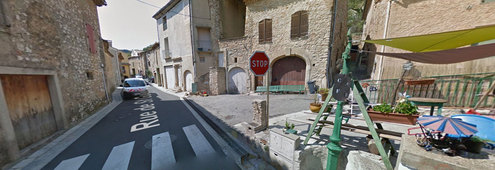 Au milieu de la rue principale du village, sur la mini place en face du seul restaurant/bar. 200m après le panneau indiquant le début du col du vent.