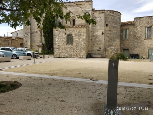 Sur la place de l'église Saint-Étienne, à coté de la mairie, il y a un robinet