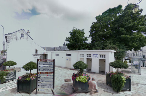 Les toilettes se trouvent à proximité de l'église, à l'angle de la rue Descartes et de l'Avenue De Gaulle.