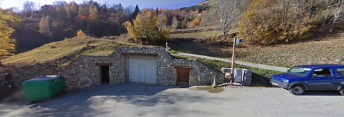 Des toilettes et une borne verte se trouvent le long de la route, un peu avant l'entrée dans le village.