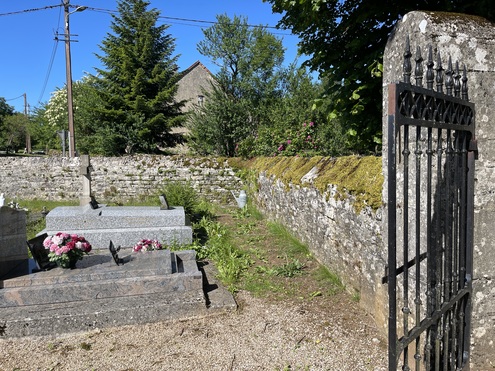 Il faut rentrer dans le cimetière, puis dans le coin à droite en entrant.