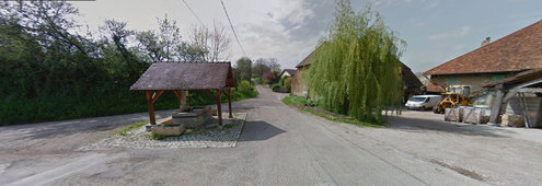 La fontaine se trouve à la séparation entre la D249 et la rue de la Boutière.
