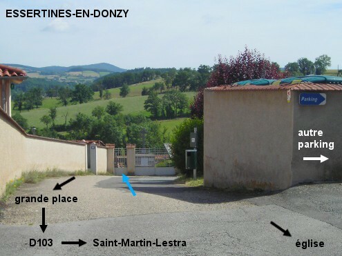 Le cimetière est situé au fond d'une courte impasse débutant devant l'église. Sur la D103 en direction de Saint-Martin-Lestra, tourner à gauche sur la place devant l'église et prendre l'allée à gauche juste devant l'église. Le cimetière est quelques mètres plus bas au bout de l'impasse. Le robinet est à l'intérieur du cimetière, à gauche du portillon.
