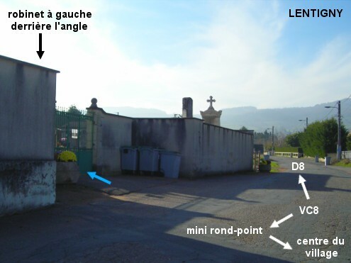 Le cimetière est situé face au numéro 166 de la rue des Cyprès. En provenance de Ouches sur la D18, au carrefour en T (vers le centre du village) tourner à droite (rue des Sapins) puis au mini rond-point tourner à droite dans la rue des Cyprès. Le cimetière est implanté côté gauche 190 mètres plus loin. Le robinet est à l'intérieur du cimetière, derrière l'angle à gauche du portail. N.B. : Si l'on continue dans la rue des Cyprès, celle-ci arrive sur la D8 au niveau du lieu-dit Pierre-à-Bois. Et si l'on retourne au mini rond-point et tourne à droite pour reprendre sa direction initiale, on débouche plus loin sur la D53 au niveau du lieu-dit Le Pont (avant le grand rond-point en bas de Villemontais).
