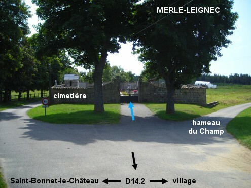 Le cimetière est situé en périphérie du village, à 50 mètres de la D14.2. En provenance du centre du village et en direction de Saint-Bonnet-le-Château sur la D14.2, environ 60 mètres avant le panneau marquant la fin du village, tourner à droite en direction du lieu-dit Le Champ. Le cimetière est implanté 50 mètres plus loin, dans la fourche entre une petite route à gauche et une autre petite route à droite (qui a un panneau identique à ceux des noms de rues avec ''hameau du Champ'') qui conduit au lieu-dit le Champ. Le robinet est à l'intérieur du cimetière, à gauche du portail.