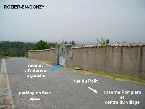 Le cimetière est situé à la périphérie du village, non loin de la caserne des Pompiers. En suivant la direction "centre bourg" on arrive par la rue de la Font Barry sur un carrefour en T à l'angle duquel il y a une Maison Médicale, tourner à droite dans la rue du Poët, la caserne des Pompiers est juste après côté droit. Continuer 200 mètres après le carrefour, le portail d'entrée du cimetière est sur le côté droit de la rue, face à un parking. Le robinet est à l'intérieur du cimetière à gauche du portail (N.B.: L'ancienne borne à droite ne fonctionne plus).