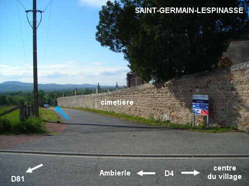 Le cimetière est situé à l'entrée du village, côté gauche sur la D4 en provenance d'Ambierle, juste après l'intersection avec la D81 direction St-Haon (côté droit). Une longue allée perpendiculaire à la route donne accès à l'entrée du cimetière (dans sa deuxième partie). A l'intérieur du cimetière, immédiatement à droite du portail (à côté de l'escalier montant dans la première partie) il y a une borne verte pompe à eau (l'eau coule rapidement après qu'on l'a actionnée).