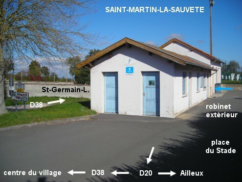 Par contre l'eau était en service sur le lavabo (à côté des urinoirs) dans les toilettes situées à proximité. Voir la fiche du « WC de Saint-Martin-la-Sauveté, vers stade ». Traverser le terrain en terre battue pour y accéder.