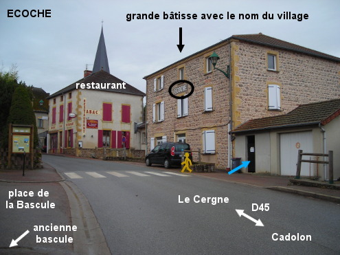 Ces toilettes sont situées dans le bourg au bord de la D45 face à un passage piéton implanté devant le côté droit de la ''place de la Bascule''. 1) En provenance de Cadolon sur la D201 qui devient D45, on trouvera les toilettes sur le côté droit de la route (entre le n°261 et le n°235) face au passage piéton qui dessert la place implantée côté gauche et sur laquelle il y a une ancienne bascule. Les toilettes sont situées entre un box de garage et une grande bâtisse en pierre sur la façade de laquelle est écrit en gros caractères le nom du village, pile dans l'axe du passage piéton. 2) En provenance du Cergne sur la D45, bien après la Mairie puis l'église, et peu après un restaurant (et épicerie de village), tous implantés côté gauche, on verra le passage piéton qui est situé face aux toilettes, côté gauche dans ce sens de circulation.