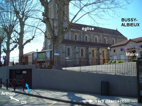 Les toilettes sont situées le long de la D8 à proximité de l'intersection avec la D42, en face d'une grande place avec parking, côté droit en direction d'Arthun, en contrebas de l'église et de la Mairie.