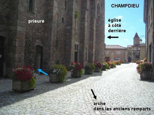 Ces toilettes sont dans le bâtiment du prieuré du XIe siècle au cœur du bourg médiéval. En provenance soit du Nord : de Pralong par la ''route de Boën'' (petite route parallèle à la D8), soit de l'Est : de Chalain-le-Comtal par la ''rue de la Gare'' (après la D110 et la D5, et après avoir traversé la D8), on arrive sur le carrefour dit de la Rotonde : il y a un grand kiosque rond surmonté d'une pendule (attention : l'eau de la fontaine est non potable). Lorsque l'on fait face à la pendule, prendre la route en face sur la droite du kiosque (rue de la Mairie), plus loin au carrefour en T tourner à droite et peu après à gauche (flèches ''Prieuré''). Passer sous l'arche (dans les anciennes fortifications du bourg), le prieuré se trouve quelques mètres après sur la gauche, juste avant l'église qui lui est accolée. Dans le mur du prieuré (face au n°72) une porte en position ouverte (la deuxième) donne accès aux toilettes.