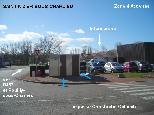 bloc sanitaires neuf mis en service en mars 2021, à l'angle de l'impasse Christophe Collomb et de la rue Magellan qui donne sur la D487 reliant Pouilly-sous-Charlieu à Charlieu, dans la Zone d'Activités de St-Nizier derrière le supermarché Intermarché (visible depuis la D487) la cabine toilettes à nettoyage automatique est fermée de 22h à 6h mais il y a un robinet extérieur accessible à toute heure (et aussi des urinoirs extérieurs)