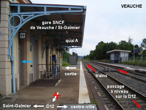 Ces toilettes sont situées dans le bâtiment de la gare SNCF de Veauche / Saint-Galmier. En provenance du centre-ville de Veauche, sur la D12 en direction de Saint-Galmier, immédiatement après le passage à niveau sur la voie ferrée, tourner à droite sur le parking de la gare, accéder au quai A par la gauche du bâtiment. Les toilettes sont situées côté quai au bout du bâtiment. N.B.: Le lavabo dans la cabine WC turc (porte de droite) est très petit. La cabine accessible aux handicapés était verrouillée.