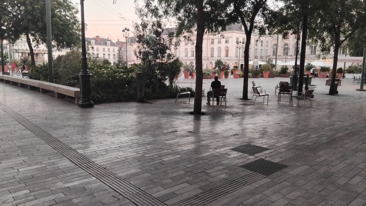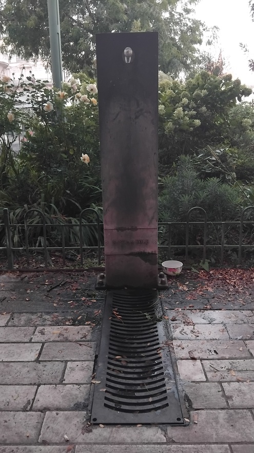 Robinet situé dans l'angle nord-ouest de la place du Martroi, devant de la végétation
