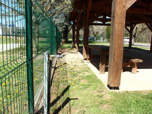 Fontaine aux jeux d’enfants et à l’abri couvert, au bord du Lot, rue du Moulin du Lot ou Promenade de Héron (parking), près de la piscine et de la salle des Fêtes. Sur le parcours de La Vallée du Lot à vélo (V86).