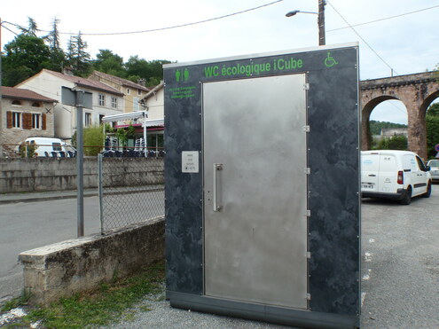 WC publics du P+R Parc Relais des Chartreux rive gauche du Lot, proche du Chemin de la Chartreuse où passe la Vallée du Lot à vélo (V86) et sur le parcours de La Vagabonde (V87)